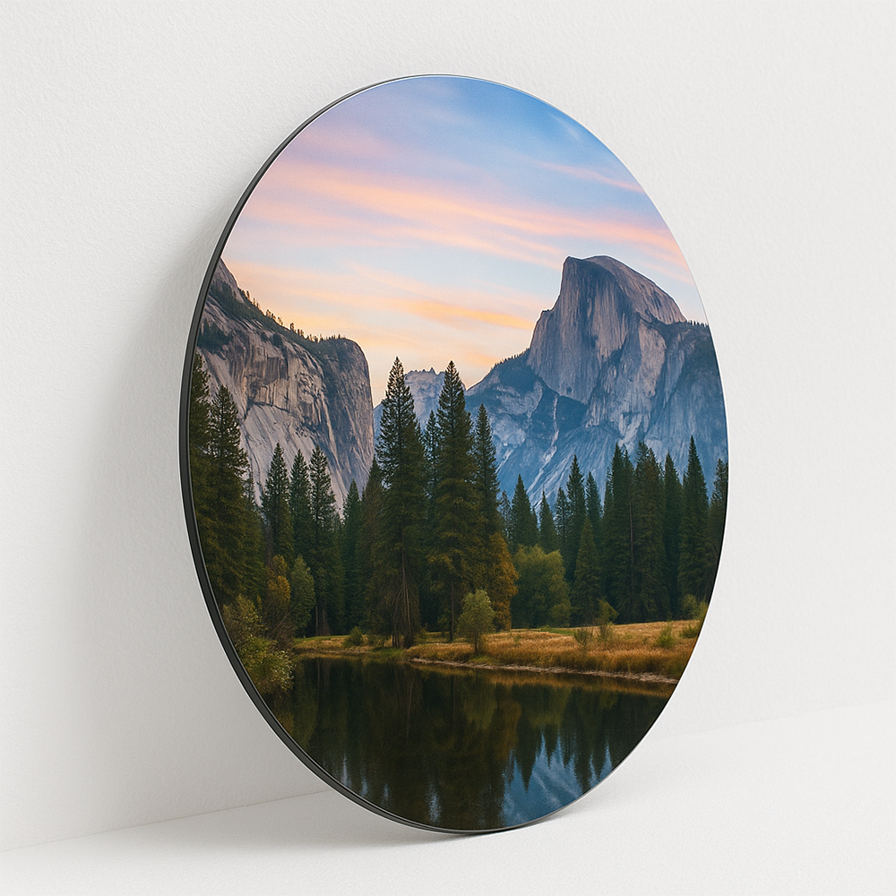 Personalizarea se face cu print UV pe partea din spate a plexiglasului pentru a crea efectul de lupă, prin aplicarea de autocolant decupat sau gravură laser (arată ca o sablare pe sticlă).