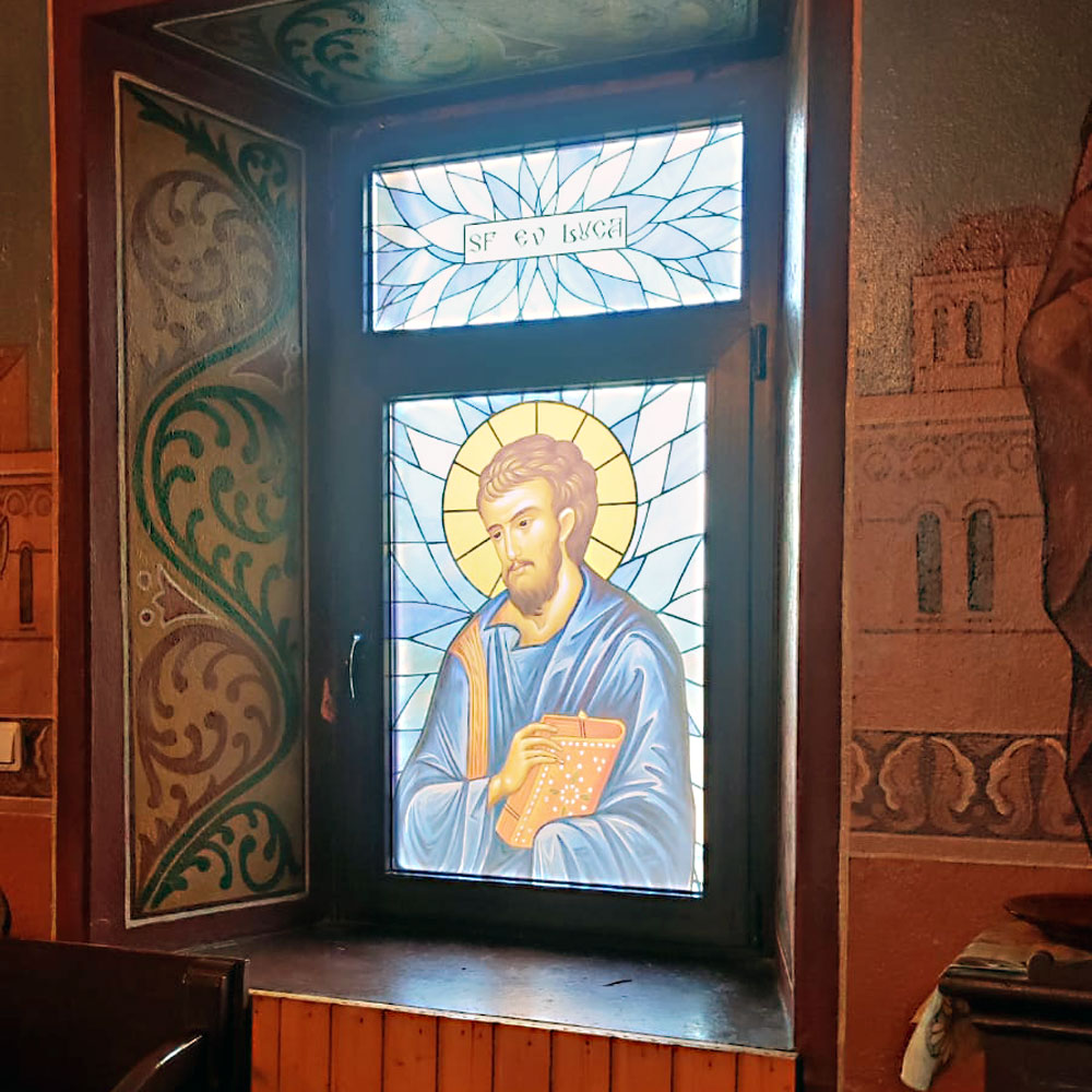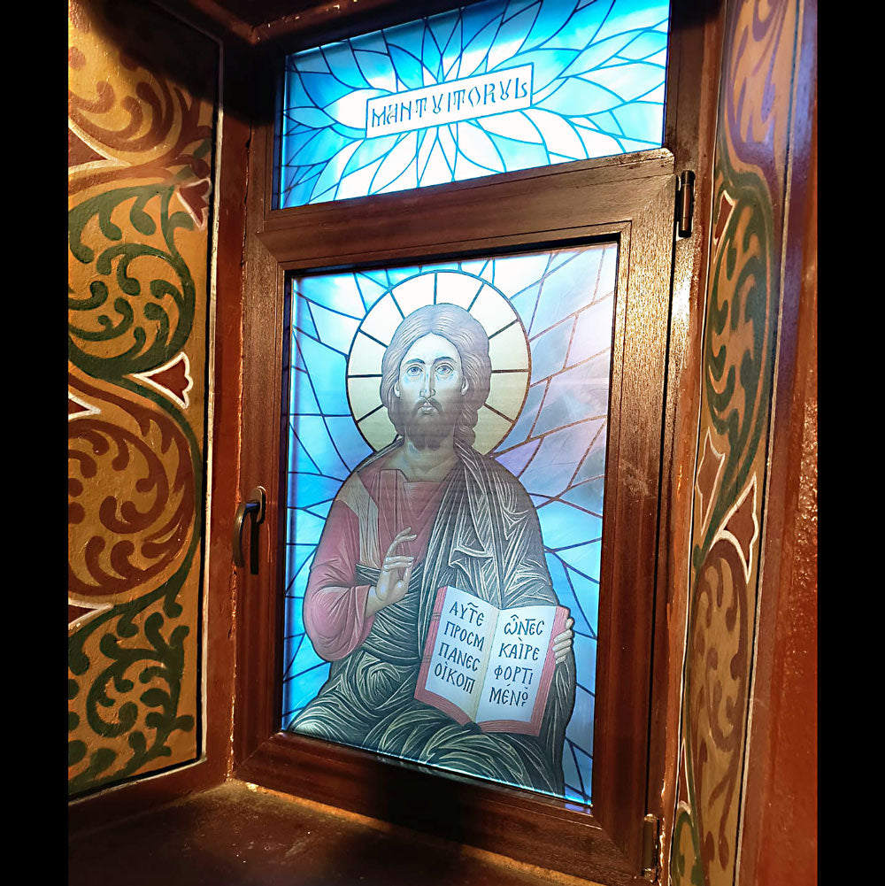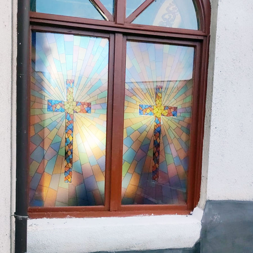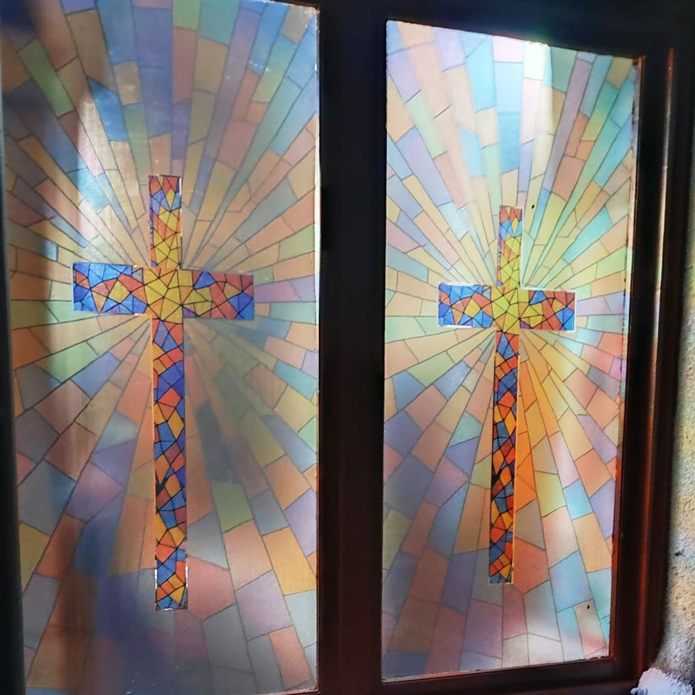 Vitralii autocolante cu teme bisericești ideale pentru ferestrele existente, clasice sau din termopan.